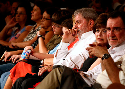 Lula se emociona ao assistir filme sobre sua trajetória. (Foto: Mario Miranda/Reuters)Também compareceram os ministros do Planejamento, Paulo Bernardo, e do Desenvolvimento Social e Combate à Fome, Patrus Anananias, além do ex-presidente do PT, José Genoino. Antes de tomar seu lugar para assistir pela primeira vez à sua cinebiografia, Lula posou para fotografias com a equipe do filme, como a atriz Glória Pires, que interpreta Dona Lindu, a falecida mãe do presidente, Juliana Baroni, que faz o papel da Dona Marisa, e o diretor do longa, Fábio Barreto.“Eu estou emocionado por mostrar esse filme para o presidente e para a comunidade”, disse o cineasta. Ele fez questão de lembrar que 90% da película foi filmada em São Bernardo. Após a exibição, o presidente foi cumprimentado por muitas pessoas da plateia, que reunia também sindicalistas e autoridades políticas de São Bernardo. Ao término da sessão, Lula saiu sem falar com os jornalistas.